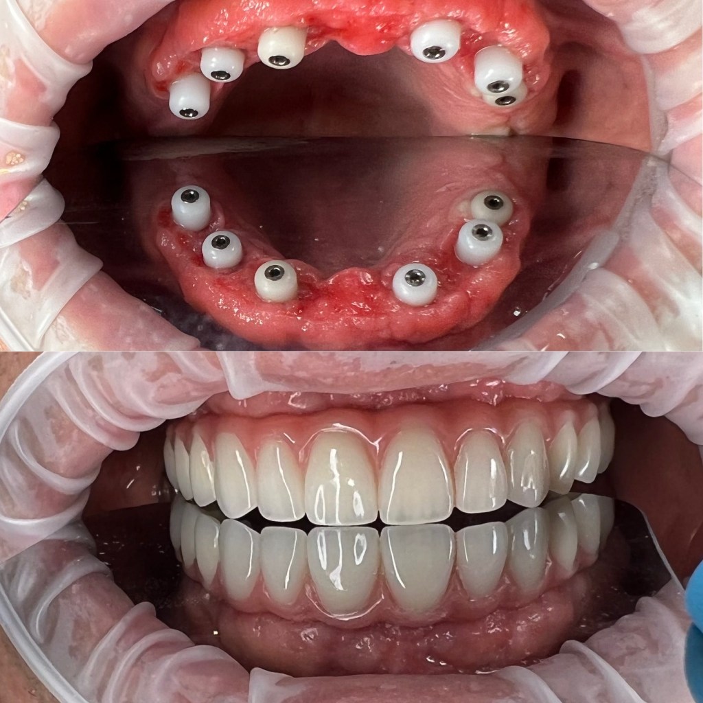 -inserare 8 implanturi dentare in osul maxilar si 8 implanturi dentare in mandibula